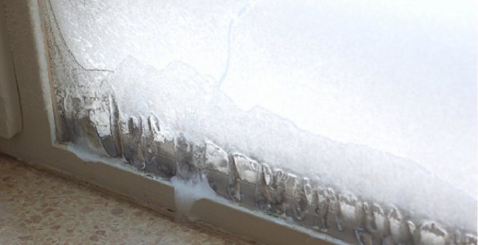 En hiver, l'humidité gèle, se dilate et dégagements croissants, formation de fissuresdans lequel à l'intérieur l'air froid pénètre... Ces zones deviennent des foyers l'apparition de glacecela améliore la destruction du bloc de fenêtre. Pendant la saison chaude sur des surfaces humides le moule est formé, un champignon apparaît, ce qui nuit à la santé humaine.