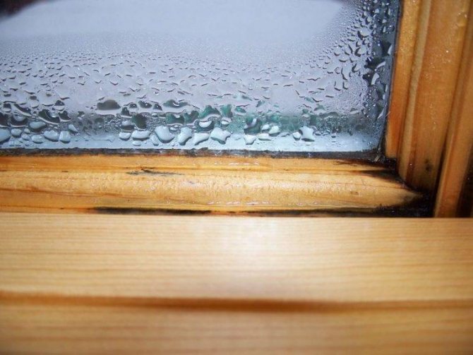 L'humidité accrue dans la pièce contribue également à l'apparition de condensation sur les fenêtres en bois, qui se forme à la suite du lavage, du séchage de vêtements mouillés sur des radiateurs, etc.