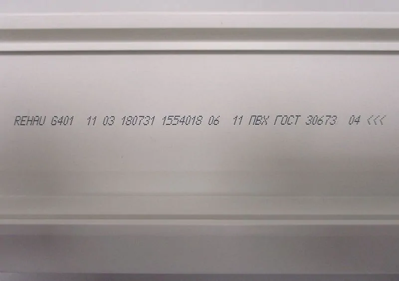 Mais l'inscription sur le film protecteur n'est pas le seul moyen d'identifier le fabricant du profil. Tous les profils sont en outre marqués avec un marquage laser ou une impression thermique. Nous avons décrit en détail où et comment trouver les marquages sur le profil dans l'article - Comment vérifier l'authenticité d'un profil de fenêtre?