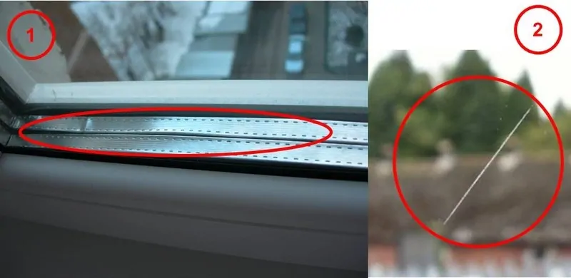 Photo: le mariage peut être non seulement sur le profil, mais aussi dans les fenêtres à double vitrage. Les cas les plus courants sont un cadre défectueux (1) et des rayures sur le verre (2)