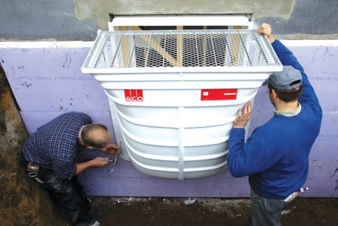 Le corps du puits est installé dans la fosse finie, toutes les communications sont connectées (drainage, drain, grille sur le tuyau de drainage). Après tous les travaux ci-dessus, il reste à installer une clôture ou une grille pour la fosse et la structure est prête. Tous les éléments structurels sont fixés les uns aux autres et au mur avec des chevilles spéciales, qui sont incluses dans l'emballage du produit.