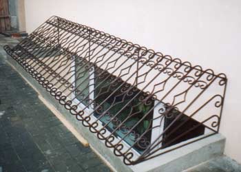 Lorsque les fenêtres donnent sur une rue bruyante, il est préférable de faire de petites clôtures en forme de barres métalliques. Les structures en acier protégeront contre les débris de la rue, la saleté et les vandales.