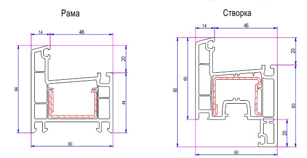 60 mm. Dans ce cas, les clients reçoivent un système à deux chambres de conception simplifiée, dont le dispositif permet l'installation de fenêtres à double vitrage d'une épaisseur totale de 4 à 32 mm. C'est une option appropriée pour les régions aux climats chauds et tempérés. La hauteur de feuillure est de 20 mm. Le nombre de contours d'étanchéité est de deux.