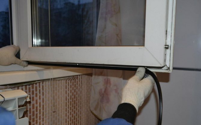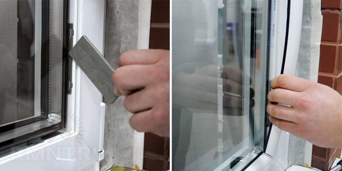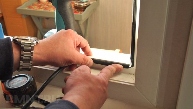 Le mastic doit être lubrifié avec de la vaseline (silicone) et inséré dans le bord de la rainure. Ensuite, vous devez étirer toute la longueur de la rainure, tenez l'extrémité avec une pince. Les extrémités du joint sont coupées avec un couteau tranchant de sorte qu'elles se chevauchent - verticalement et horizontalement. Les bords du joint doivent être dégraissés avec de l'essence et fixés avec un mastic silicone. À la fin, l'ouvrant est mis en place: ils mettent la boucle inférieure sur la tige, puis la tige supérieure est finie avec un marteau. Ensuite, la position de l'ouvrant et la pince sont ajustées.