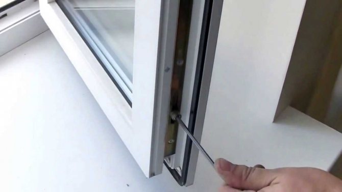 - Parfois, il est nécessaire de réduire ou d'augmenter l'écart entre le cadre et le châssis en mode ventilation. La vis de réglage est responsable de ce secteur, qui est situé en bas sur la tige qui supporte l'ouvrant lors de l'ouverture pour la ventilation. Les experts appellent le système un ciseau.
