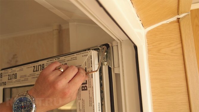 - Pour ajuster la partie supérieure de l'ouvrant sur les côtés, vous devez ouvrir l'ouvrant, où la vis est située près de la charnière, qui est responsable de cette procédure.