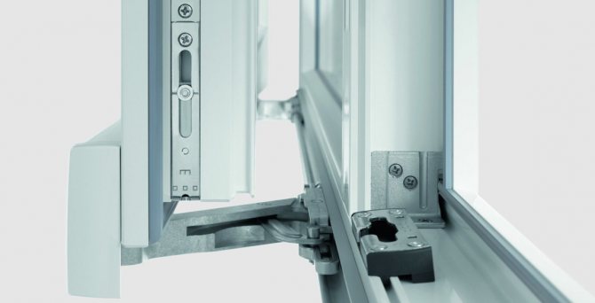 Une ferrure spéciale a été développée pour la fenêtre, prévoyant la mise en œuvre d'un mécanisme de verrouillage complexe. Ce groupe comprend divers supports et tiges, charnières, éléments de connexion (plus d'une centaine de pièces différentes au total). Grâce à un système aussi complexe, une fermeture hermétique étanche des châssis est garantie, la possibilité de fixer la fenêtre dans la position souhaitée ou de tourner.