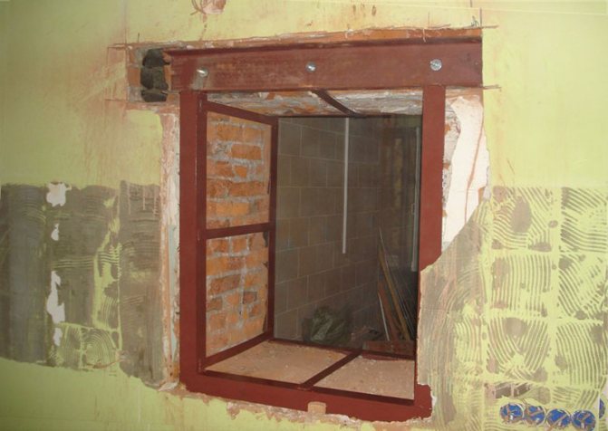 La sécurité est avant tout, car sans planification préalable, le linteau avec une partie du mur de briques au-dessus de la structure de la fenêtre s'effondrera, car il n'aura rien à quoi s'accrocher. La première priorité est d'installer un nouveau cavalier plus large. Il est fait d'acier à poutre en I ou d'angles métalliques soudés.