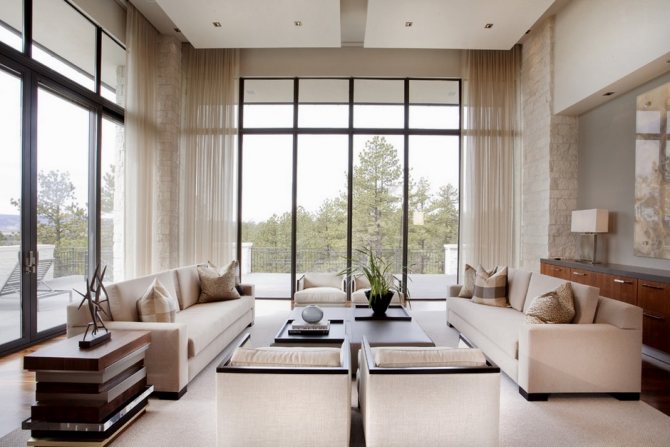Les éléments structurels de fenêtre (cadres) avec des ferrures pour soutenir le mouvement du châssis sont la partie la plus chère de la fenêtre. S'il est important de combiner un intérieur avec un jardin sans barrières optiques, il est préférable de choisir des fenêtres avec de grands châssis sans divisions structurelles.