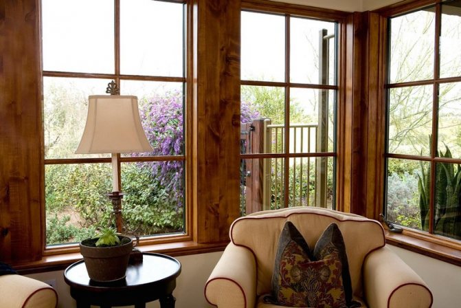 La plupart des cadres de fenêtres sont en pin. C'est le moins cher et la structure lâche du bois a une faible conductivité thermique et retient parfaitement la chaleur dans la pièce. Le bois de chêne et de mélèze est plus dur et plus durable, mais aussi lourd. Le prix des euro-fenêtres en bois avec fenêtres à double vitrage de ces essences est plus élevé que celui du pin.
