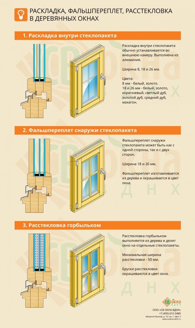 Ce sont des fenêtres ordinaires dont la partie intérieure est délimitée par un "treillis". Il peut être décoratif ou fonctionnel. Sous nos latitudes, les fenêtres en métal-plastique avec des lattes décoratives sont principalement utilisées, tandis qu'en Europe le «treillis» est une partie structurelle des fenêtres en bois.