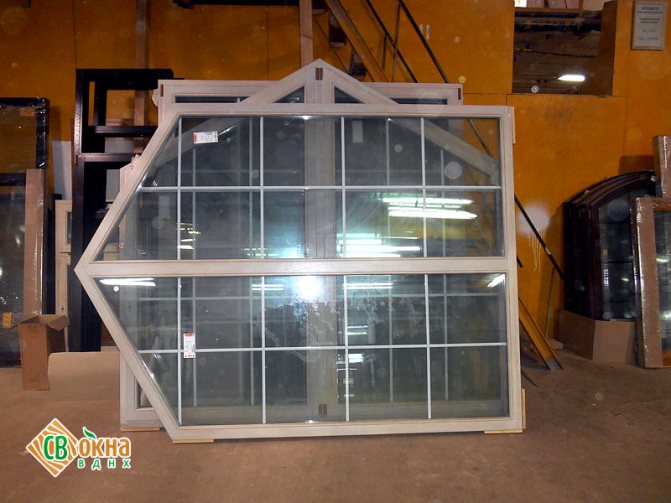 En fait, ce sont plusieurs fenêtres à double vitrage séparées combinées en une seule toile. Les feuilles peuvent être articulées ou sourdes. Par exemple, une fenêtre standard avec plusieurs châssis est une fenêtre déviée. Il est également utilisé dans la fabrication de fenêtres à double vitrage irrégulières, par exemple triangulaires, cintrées.