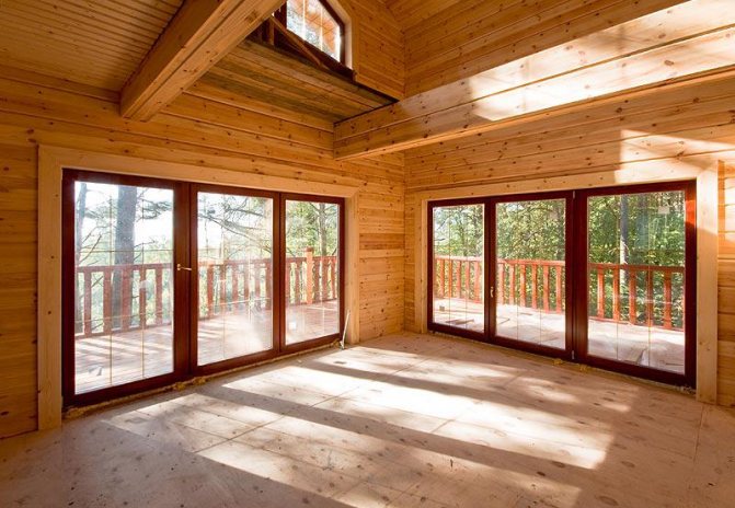 Un excellent type de vitrage qui nous est venu de France. Grâce à la grande surface vitrée, toute la pièce est baignée de soleil. Les dimensions d'une fenêtre panoramique dans une maison privée peuvent atteindre 80% du mur.