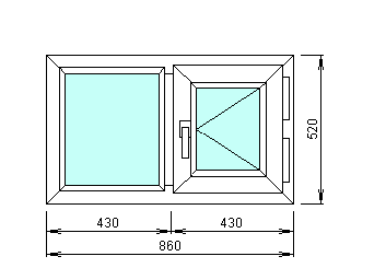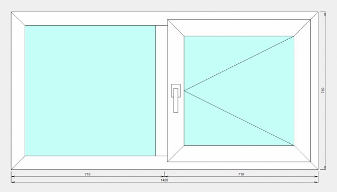 - Fenêtre à double battant: hauteur 150, largeur - 145 cm;