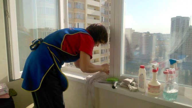Les fenêtres en plastique doivent être lavées dans un certain ordre: nettoyez le cadre et la vitre avec un détergent dissous dans de l'eau, puis utilisez uniquement un nettoyant pour vitres ou de l'eau avec du vinaigre. Lors de l'entretien de fenêtres modernes, l'utilisation de produits de nettoyage agressifs est strictement interdite.