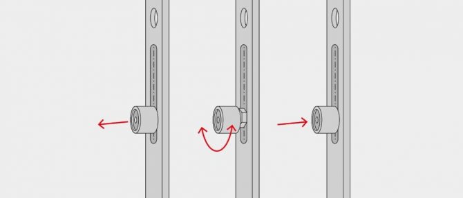 - Il est nécessaire de déplacer toutes les broches de la barre métallique en position ouverte, c'est-à-dire de l'installer au milieu.