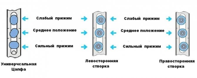 Les excentriques sont conçus pour contrôler l'étanchéité des parties adjacentes du cadre de la porte les unes aux autres. Le principe de fonctionnement est similaire à la charge fonctionnelle effectuée par eux dans les structures de fenêtres. La densité d'adhérence est régulée en tournant ces mêmes excentriques. Il y a une séquence claire d'actions à fermer aussi étroitement que possible. Tout d'abord, les charnières sont libérées des rabats décoratifs. Ensuite, la ceinture s'ouvre et le bloqueur est enfoncé. Le haut de la porte est ensuite tiré vers l'arrière pour permettre un accès normal aux excentriques. Ensuite, la vis tourne. Si le niveau de pression souhaité est atteint, il ne reste plus qu'à effectuer les dernières actions. Lubrifiez les pièces mobiles. Ensuite, la serrure est enfoncée et la porte revient à sa position d'origine. La plus grande compression est fournie par la position des excentriques au niveau maximum. Après le réglage, le boulon de sécurité est abaissé, les pièces sont déplacées et le support est resserré.