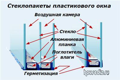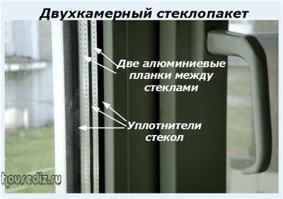 L'élément principal qui transmet la lumière du soleil à travers la fenêtre est une fenêtre à double vitrage. La conception la plus simple est créée à partir d'une chambre, comprenant deux verres identiques d'une épaisseur de 3 ou 4 mm, séparés le long du périmètre par une bande métallique, par exemple en aluminium. Il est complété par un absorbeur d'humidité et une couche d'étanchéité autour du périmètre.