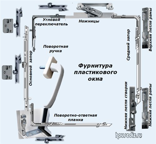 Le fonctionnement fiable du châssis est assuré par des ferrures - un ensemble d'éléments métalliques supplémentaires qui créent différents modes de fonctionnement de la fenêtre.