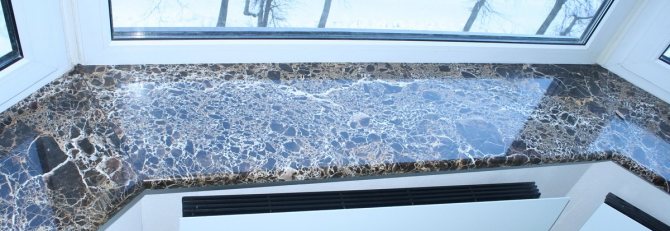 Une plate-forme en pierre sous le rebord de la fenêtre se trouve souvent là où il y a beaucoup de monde. Il ne s'use presque pas, résiste aux chocs, n'a pas besoin de teinture régulière. Avantages des appuis de fenêtre en pierre:
