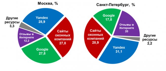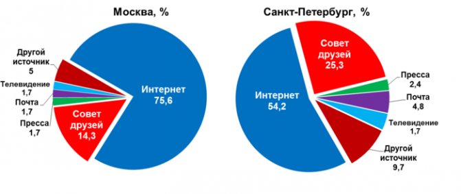 L'Internet est le moyen d'information le plus populaire à Moscou et à Saint-Pétersbourg. Dans le même temps, les résidents de Saint-Pétersbourg sont plus enclins à obtenir des informations grâce à une communication directe avec des amis et en se tournant vers des sources d'information conservatrices. Les habitants de Moscou ont presque complètement opté pour Internet comme principale source d'information pour choisir une entreprise de fenêtres.