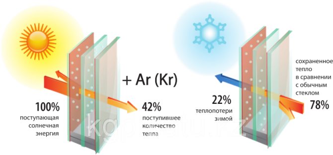 Par temps chaud, ces fenêtres absorbent jusqu'à 58% de la chaleur du soleil. Et pendant les gelées, jusqu'à 78% de la chaleur sera stockée à l'intérieur.