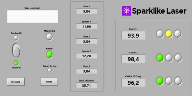 L'équipement de mesure a été testé dans le laboratoire ift Rosenheim. Les tests ont été réalisés sur 13 échantillons de fenêtres à double vitrage remplies d'argon, de différentes conceptions: simple chambre, double chambre, avec verre transparent, verre enduit, verre feuilleté.