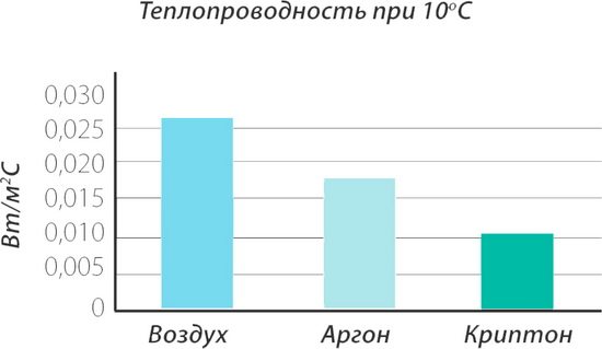 À propos, le krypton a récemment commencé à être utilisé comme substance pour remplir l'espace entre les vitres dans les chambres de fenêtres en plastique et métal-plastique. Dans le même temps, les fenêtres à double vitrage à l'argon sont devenues beaucoup plus répandues que les fenêtres à double vitrage au krypton, car Ar est plus abordable pour l'acheteur en raison de son coût et de sa technologie de production plus simple. À son tour, la méthode d'augmentation des propriétés d'isolation thermique des structures de fenêtres utilisant de tels gaz est très efficace, ce qui a été prouvé à ce jour en effectuant des tests appropriés. Par exemple, le point de rosée pour Ar et Kr est T <-100°C, ce qui protège de la condensation inter-verre.