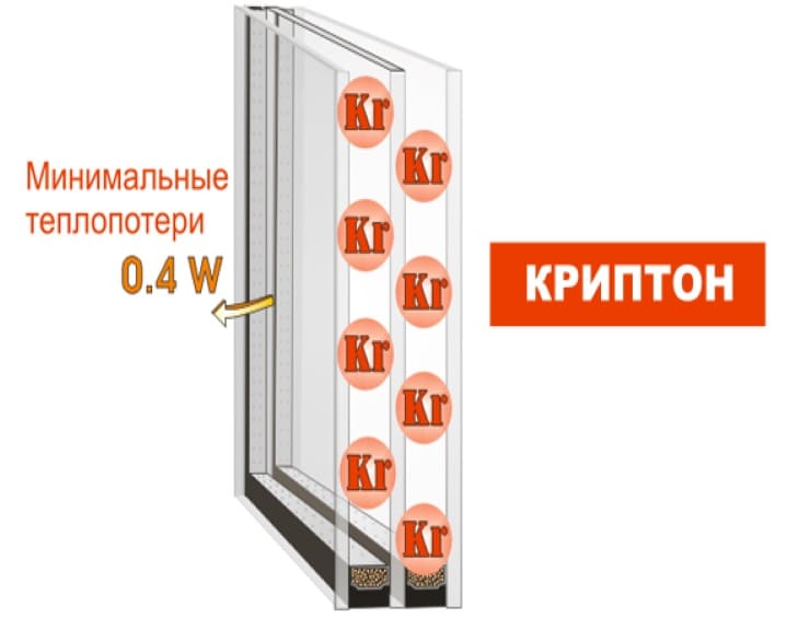 Dans les systèmes de fenêtres en plastique plus anciens, l'espace entre les vitres était rempli d'air normal. De nos jours, les fenêtres à double vitrage au krypton et à l'argon sont devenues plus répandues, ce qui peut réduire considérablement le niveau de perte de chaleur dans la pièce, ainsi que fournir un niveau élevé d'isolation thermique et acoustique. Les deux gaz se trouvent en quantités variables dans l'atmosphère terrestre et sont considérés comme sûrs pour des utilisations spécifiques lorsqu'ils peuvent profiter aux humains.