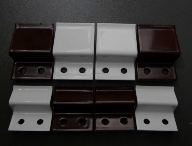 Les attaches spécialisées diffèrent des attaches universelles en ce qu'elles sont équipées d'oreilles. Ces éléments sont installés dans la rainure du profilé de cadre et fixés vis autotaraudeuses... Les plaques universelles n'ont pas de cosses spéciales. Ils sont simplement fixés avec des boulons.