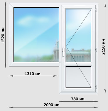- bloc de balcon - standard pour une fenêtre 800 × 1430 mm, pour une porte 750 × 2150 mm;