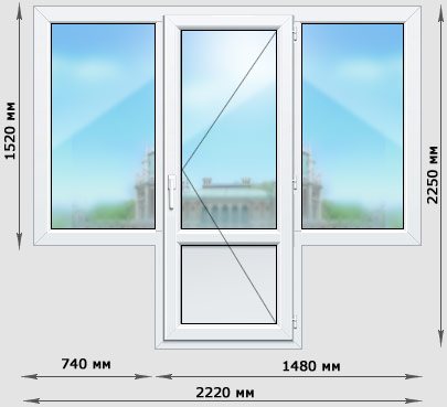 Dimensions de la fenêtre du balcon de Khrouchtchev avec une porte centrale.