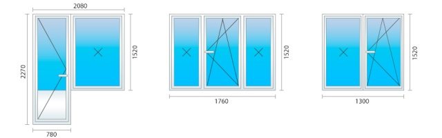 - fenêtres à trois vantaux - standard 1780 × 1430 mm;