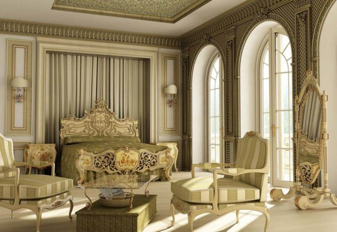 Si l'intérieur et l'extérieur sont conçus dans n'importe quel style, il vaut la peine de choisir l'option la plus appropriée pour la direction choisie. Par exemple, les classiques sont caractérisés par le ton du chêne et de l'acajou, le baroque est caractérisé par la dorure, le moderne est blanc et la haute technologie est parfaite avec l'argent.