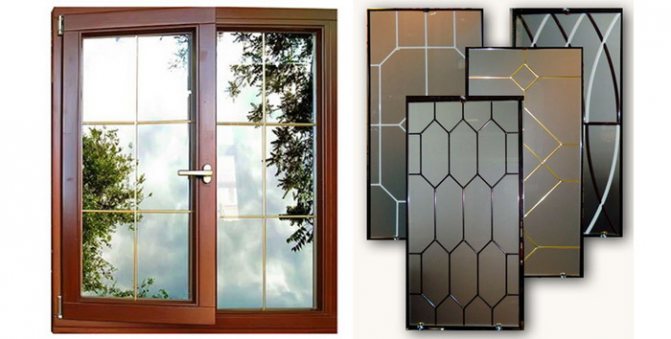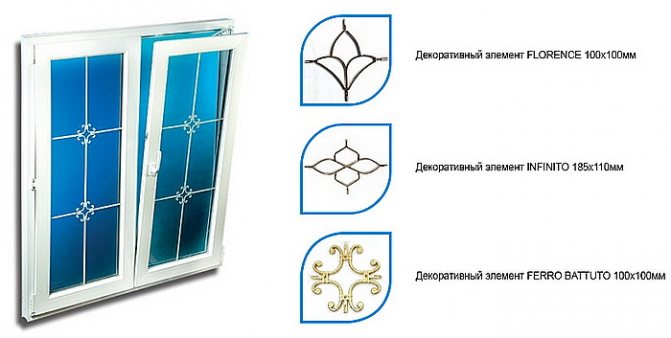 Les éléments décoratifs n'affectent en aucune façon les propriétés opérationnelles de l'unité en verre - pas de ponts froids et sont abordables. De plus, la possibilité de mettre en œuvre toutes les solutions de conception - briser la feuille de verre en fragments identiques, créer une imitation d'un arc ou décorer avec des monogrammes.
