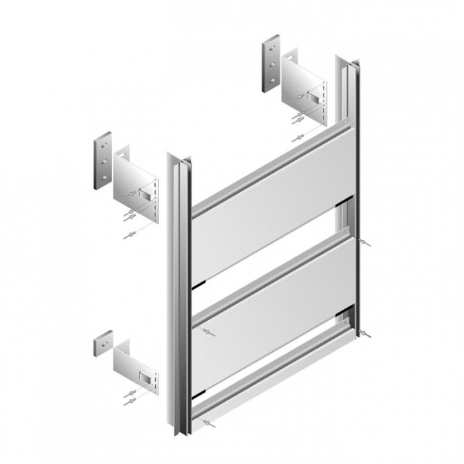 Les montants et les cadres sont fixés à la structure du bâtiment à l'aide d'ancrages spéciaux en acier ou en aluminium. Les pièces d'ancrage sont fixées de l'extrémité des poteaux aux plafonds, aux murs ou aux structures métalliques à l'aide de chevilles de montage, d'ancrages ou de soudure