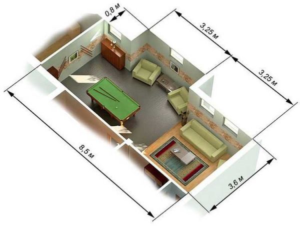 Autre remarque importante: la surface de la pièce, le sol et le plafond sont tous de la même taille. Des différences peuvent survenir s'il y a des demi-colonnes qui n'atteignent pas le plafond. Ensuite, la quadrature de ces éléments est soustraite de la quadrature totale. En conséquence, nous obtenons la surface au sol.