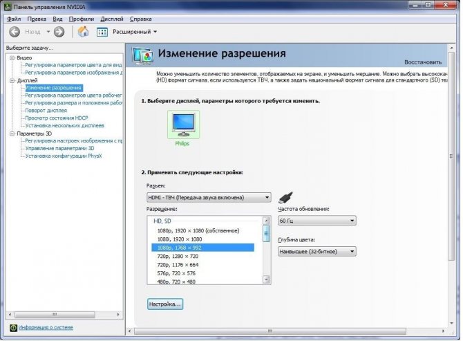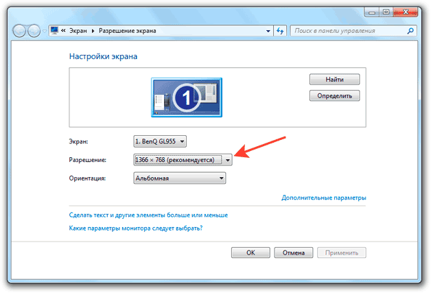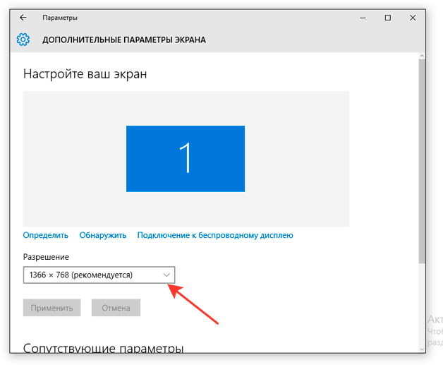 - Immédiatement après cela, la ligne Ajouter ou supprimer des programmes « Changer la solution » apparaît. Ici, vous pouvez ajuster la taille de l'affichage à votre convenance ;