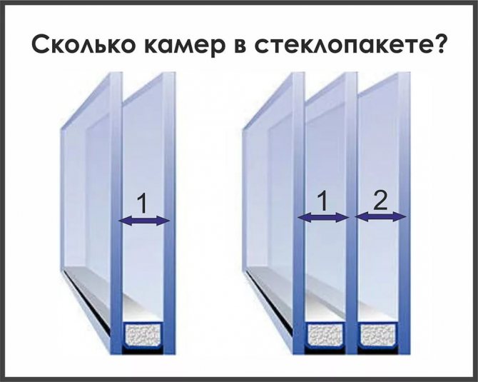 L'espace intérieur des fenêtres à double vitrage (chambres) est rempli d'air séché ou de gaz inertes, qui forment une couche de protection thermique. Évidemment, plus ces couches sont nombreuses, plus la structure est chaude.