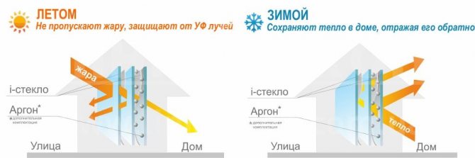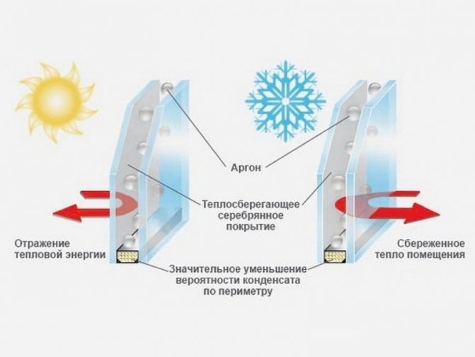 Pour réduire la perte de chaleur à travers les fenêtres, des revêtements spéciaux sont appliqués sur le verre avec une transmission unilatérale du rayonnement à ondes courtes et longues (la partie à ondes longues du spectre est constituée de rayons infrarouges émanant d'appareils de chauffage, ils sont retardés et le une partie à ondes courtes - rayons ultraviolets - est transmise). En conséquence, en hiver, la lumière du soleil pénètre dans la pièce et la chaleur ne quitte pas la pièce: