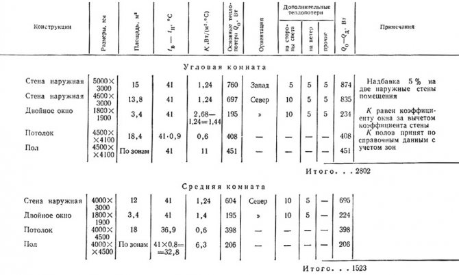 À la fin des calculs, les résultats des pertes de chaleur à travers les clôtures extérieures sont additionnés aux pertes de chaleur de ventilation, ce qui donne la charge thermique totale du système de chauffage du bâtiment.