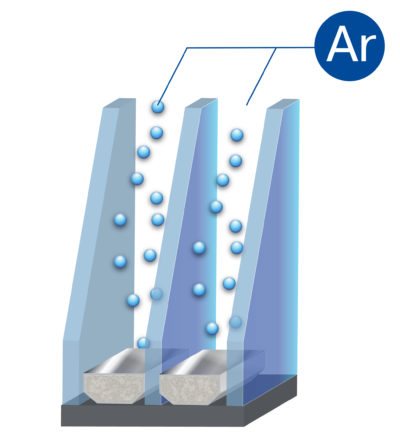 L'élément central de la fenêtre. Les fenêtres à double vitrage représentent 90% de la surface - 2 à 3 feuilles, insérées en parallèle dans un cadre métallique en aluminium ou en acier inoxydable. La structure est scellée avec du butyle, remplie sous pression supérieure à la pression atmosphérique avec de l'air séché, un gaz inerte. Un absorbeur de vapeur d'eau granulaire est placé à l'intérieur du cadre pour éviter la formation de buée.
