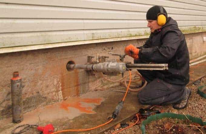 Il est possible de percer (ou de couper à travers) les bouches d'aération après l'achèvement des travaux de construction uniquement par une équipe de constructeurs professionnels disposant de tout l'équipement nécessaire à la procédure. Ces spécialistes perceront un trou d'un diamètre d'environ 150 à 250 mm. Le coût des travaux effectués dépendra du matériau utilisé pour la construction de la fondation. La largeur du mur à percer et le nombre de trous requis seront également ajoutés au coût des travaux. À condition que la partie de la fondation qui dépasse au-dessus du sol soit en brique, il est possible d'effectuer le flux d'air seul. Mais il faut garder à l'esprit que ce processus est assez laborieux et qu'un ensemble minimum d'outils est requis: un perforateur, un marteau, un ciseau.
