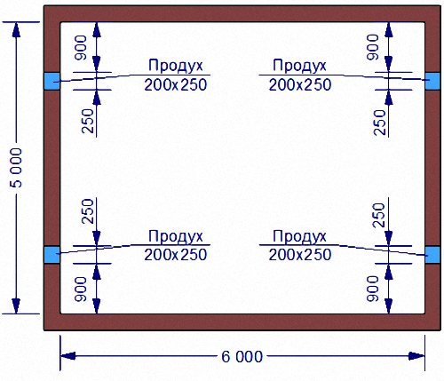 Ces trous de ventilation sont répartis uniformément sur tout le périmètre de la fondation. Cela est nécessaire pour exclure les endroits où l'air stagnera, les soi-disant «sacs non ventilés». Par conséquent, les bouches d'aération ne doivent pas être placées à plus de 900 mm du coin du bâtiment (le long des bordures intérieures), puis uniformément sur tout le périmètre.