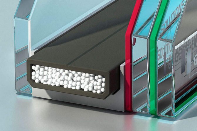- Barre de distance... Il est situé entre les vitrages et sert à maintenir les feuilles transmettant la lumière à une certaine distance les unes des autres. La barre en forme de U contient un absorbant à l'intérieur - une substance spéciale qui absorbe l'humidité.