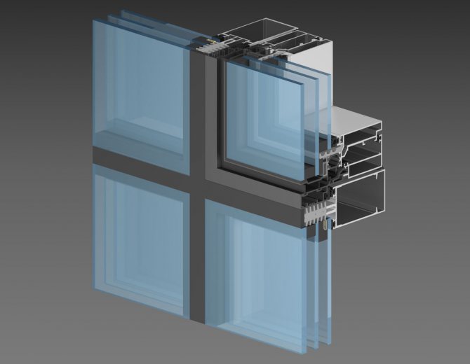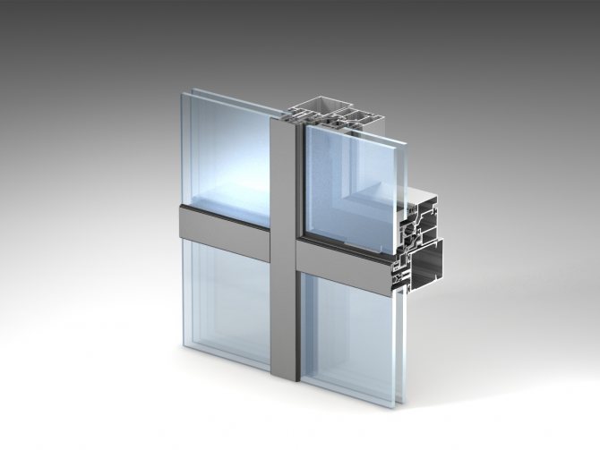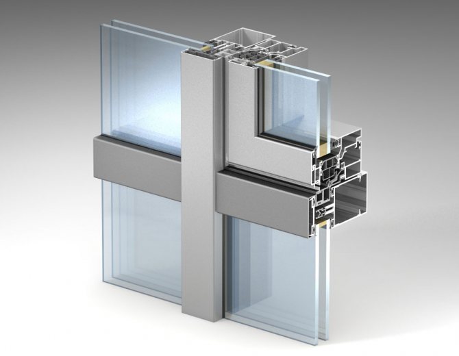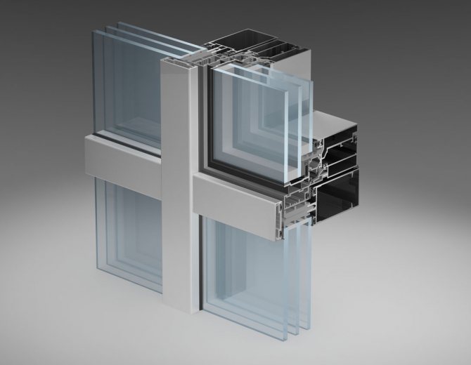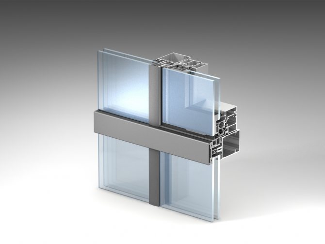 L'épicentre d'intérêt de ce type de vitrage est en son cœur. Structurellement, le vitrage en aluminium des façades est réalisé sous la forme de barres transversales verticales et horizontales porteuses, dont le nombre est déterminé en fonction de la taille des unités de verre avec lesquelles les cellules de la structure seront remplies.