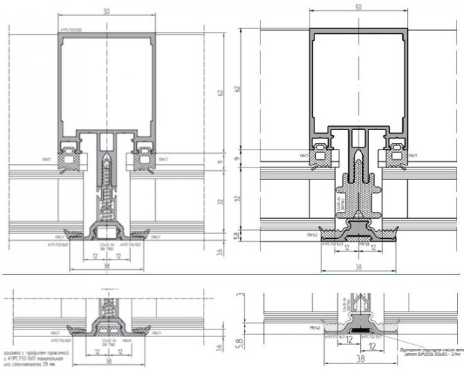 Pour l'installation du verre, deux paramètres sont essentiels: la profondeur et la largeur du joint. Les coutures doivent assurer un contact continu entre le verre et le métal et ne doivent pas contenir de poches d'air ni de vides. La profondeur minimale du joint pour le vitrage structurel est d'au moins 6 mm. Avec une augmentation de la taille de l'unité en verre, ce paramètre augmente.