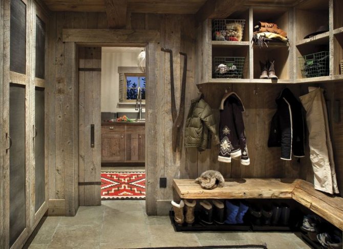 S'il y a un garage, une chaufferie ou d'autres pièces de service sous le même toit que la maison, il est alors pratique de faire du vestibule une pièce tampon à travers laquelle les gens se déplacent entre les parties résidentielle et fonctionnelle de la maison.