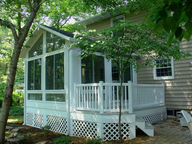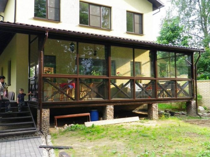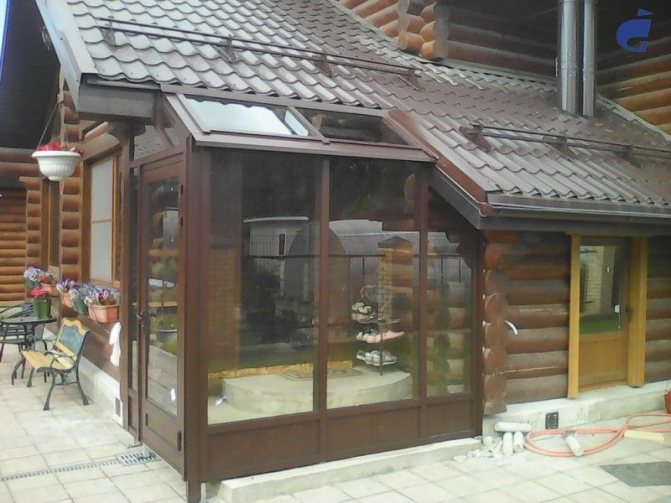 Si les dépendances ne sont pas adjacentes à la maison, les murs du hall d'entrée sont vitrés et une telle pièce à l'entrée de la maison s'appelle une véranda.