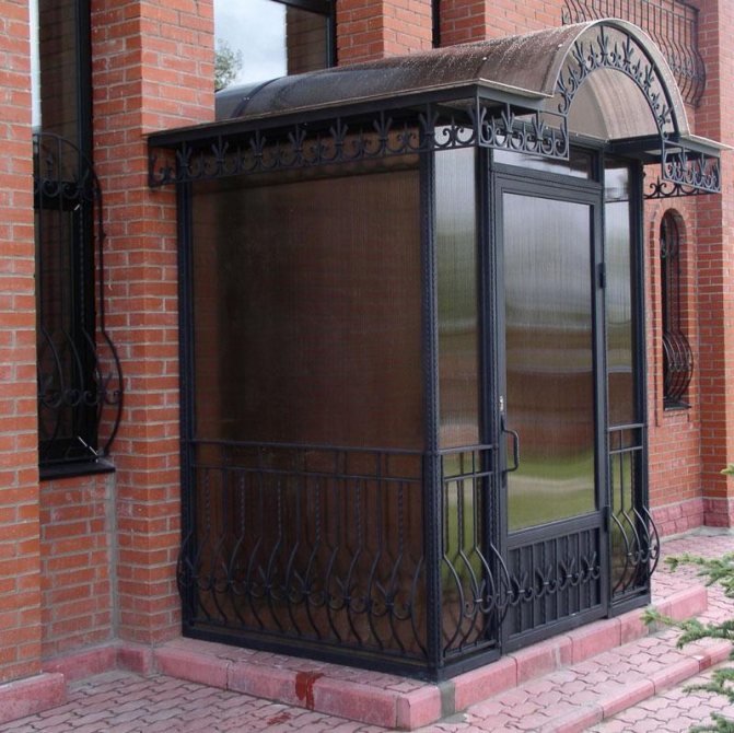 Un autre matériau largement utilisé aujourd'hui dans la construction des vestibules est le polycarbonate. Par rapport à celui discuté ci-dessus, il sera moins cher, mais moins durable.